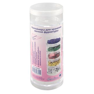 Набор из 5 туб с резьбой, накручивающихся одна на другую. Верхняя туба имеет крышку. Каждая туба является крышкой предыдущей. Предназначается для хранения бисера, бусин, страз, булавок и прочих мелочей для шитья. Страна производитель: Австралия None Возможен самовывоз. Есть доставка.