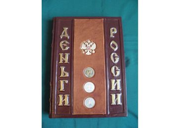 Деньги России Страниц: 440 Формат: 250 х 340 мм Кожаный переплет ручной работы ВИДЕОПРЕЗЕНТАЦИЯУникальное издание повествует о истории российских денег: от первых монет Руси до бумажных купюр и монет выпуска 2000 года, а также памятные монеты, боны, монеты из драгоценных металлов, векселя, ассигнации, банкноты, кредитные б None