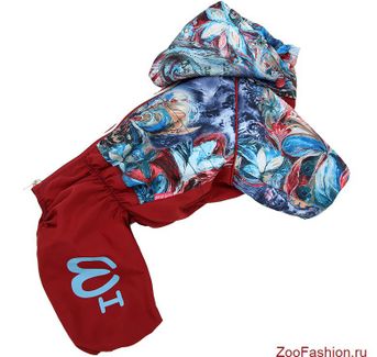 Дождевик из водоотталкивающего полиэстера, с застежкой - молнией на спине. Неразъёмная молния закрывается от горловины к хвосту, что намного упрощает одевание и снимание одежды. Съемный капюшон закрывает шею собаке и защищает от ветра и осадков. Рукава с внутренней резинкой для более плотного прилегания к лапе. На воротнике и талии регулируемая утягивающая резинка. Светоотражающий принт на штанишках и светоотражающий кант. None