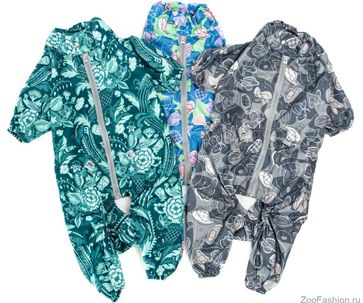 Комбинезон без подкладки из водоотталкивающей и ветрозащитной курточной ткани (100% полиэстер). Застегивается на спине с помощью молнии. За счет регулировки объёма с помощью шнура-утяжки, хозяин без проблем сможет подобрать нужный размер своему питомцу. Низ штанин сборен на резинку от попадания воды и грязи внутрь комбинезона. Выбор расцветки покупателем не предусмотрен. None