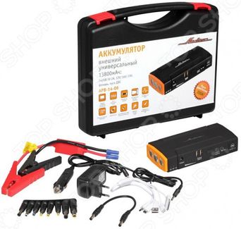 Аккумулятор внешний Airline APB-14-06 специальное устройство для автономной подзарядки мобильных устройств от порта USB и пуска двигателя транспортных средств с бортовой сетью 12 В при разряженной АКБ. Дополнительная батарея, которая обеспечит устройство энергией в любой момент. Аккумулятор отличается быстрым процессом зарядки, работает долгое время и легко восстанавливает работоспособность даже после полного разряда. Совместимость с мобильным телефоном, планшетом и цифровым плеером. Преимущества: Компактные размерные показатели устройства, благодаря которым изделие удобно перевозить и хранить в салоне автомобиля. Универсальное использование можно заряжать мобильные и запускать двигатель в авто. Высокая ёмкость при малых размерах 13800 мАч. Высокое качество материалов гарантирует высокую износоустойчивость. Стильный дизайн отлично впишется в автомобильный салон. Практичная упаковка пластиковый кейс. 2хUSB 5В 2A. 12 В, 16 В, 19 В. Пуск ДВС. None Возможен самовывоз. Есть доставка.