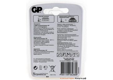 - Аккумуляторы GP 2шт, AA, 2300mAh, NiMH (230AAHC) по выгодной цене 224 р. руб.;