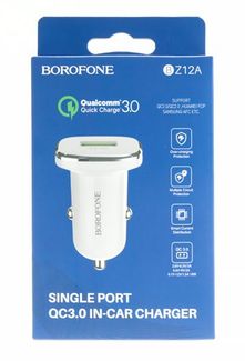 Автомобильное зарядное устройство с USB Borofone, BZ12A,QC 3.0 белый
