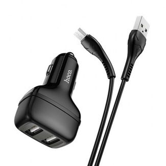 Зарядное автомобильное устройство Hoco Z36 2.4A 2xUSB + кабель microUSB, черное