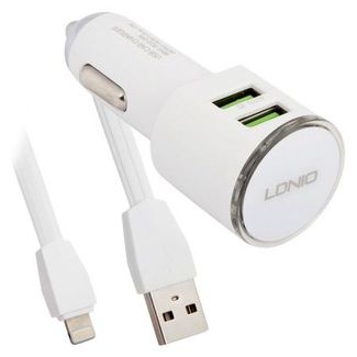 Зарядное автомобильное устройство LDNIO DL-C29, 3.4A, 2xUSB + кабель Lightning, белое (0L-00034128)