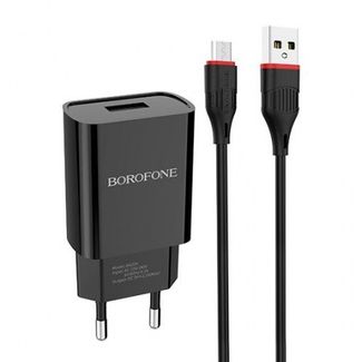 Зарядное устройство Borofone BA20A, 2.1А USB + кабель Micro USB, черное