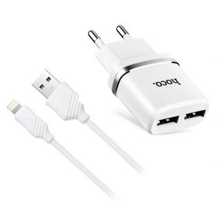 - Зарядное устройство Hoco C12 Dual 2.4А 2xUSB + кабель Lightning, белое по выгодной цене 300 р. руб.;