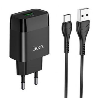 Зарядное устройство Hoco C72Q QC3.0 3А USB + кабель Type C, черное