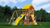 MoyDvor Версаль Детская игровая площадка Технические характеристики: . Для детей от 3 до 11 лет . Материал: дерево, пластик . Длина ската горки: 2,65 м . Рекомендуемая зона безопасности: 1,8 м (с каждой стороны) . Сертификат соответствия: РОСС RU.АД44.Н01398 . Гарантия: 1 год . Торговая марка: Россия . Страна изготовления: Россия . Максимальная нагрузка качели: 50 кг . Максимальная нагрузка на скалодром: 50 кг . Максимальная нагрузка на пластиковую горку: 40 кг . Максимальная суммарная нагрузка на платформу: 100 кг В комплекте: . Качели на канатах . Трапеция . Пластиковый спуск желтого цвета длиной 265 см с возможностью подключения воды . Зацепы для скалодрома . Песочница . Ручки металлические длиной 115 см - 2 шт . Канат к скалодрому . Комплект фурнитуры . Руководство по сборке Размеры (Д.Ш.В.): 430 х 410 х 350 см Вес: 230 кг Описание: MoyDvor Версаль - небольшой детский комплекс с деревянным фортом (желтая тентовая крыша) - это новинка 2017 года и, определенно, "Хит продаж", который сочетает в себе более чем доступную стоимость, оптимальный размер для частных домовладений, яркий запоминающийся дизайн и улучшенное качество материалов. Игровая площадка включает в себя основные игровые элементы: подвесные качели, горку, скалодром и песочницу, изготовленные из натуральных качественных материалов. Малыши могут качаться на качелях, кататься с горки или общаться друг с другом, играя в песочнице. Углубленный безопасный спуск для детей с высокими бортами исключает возможность получения травм. Прочные крепления всех элементов, высокое качество материалов и надежная конструкция делают площадку безопасной даже для самых непоседливых детей. При изготовлении используется высококачественная сибирская сосна, влажность которой составляет 12%, что на 30% повышает долговечность и срок эксплуатации детской площадки. Вся поверхность дерева подвергается 3-х этапному процессу обработки пропиткой на водной основе с применением антисептиков для ещё большей защиты от неблагоприятно
