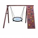 Kampfer Rocky Уличный деревянный детский спортивный комплекс Технические характеристики: . Для детей от 3-х до 14 лет . Материалы: сосна . Диаметр троса качелей: 10 мм . Регулировка высоты качелей: до 170 см (от качелей до стойки) . Диаметр сидения качелей "Гнездо малое" (внутри-снаружи): 54 -62 см . Цвет качелей-гнездо: зеленый, синий . Способ установки: каждая стойка ДСК вкапывается в землю, бетонируется или цементируется на Ваш выбор . Температурный диапазон эксплуатации: +-60° С . Торговая марка: Германия . Страна изготовитель: Россия . Артикул: Rocky . Гарантия: 1 год . Максимальная нагрузка на качели: 100 кг . Максимальная суммарная нагрузка на комплекс: 100 кг Состав модели: . А-образная опора из 2-х стоек . А-образная опора из наклонной шведской стенки и стоек с скалолазом . Перекладина для навесного оборудования Комплектация: . Доска скалолаз с зацепами и канатом . Подвесные качели "Гнездо малое" (можно заменить на качели "Гнездо большое" диаметром 100 см, стоимость ДСК составит 76450 руб.) Размеры, вес и объем в упаковке: - 1 упаковка: 300 х 9 х 9 см / 11 кг - 1 упаковка: 257 х 27 х 11 см / 27 кг - 1 упаковка: 257 х 27 х 11 см / 28 кг - 1 упаковка: 32 х 38 х 55 см / 20 кг - 1 упаковка: 73 х 4 х 121 см / 15 кг - 1 упаковка: 65 х 65 х 13 см / 3 кг - объем в упаковке: 0,418 мі Размеры сидения качелей (Д.Ш.В.): 62 х 62 х 8 см Размеры (Д.Ш.В.): 200 х 345 х 235 см Вес: 89,5 кг Описание: Уличный деревянный спортивно-игровой комплекс Kampfer Rocky предназначается для выполнения общеразвивающих и укрепляющих упражнений детьми от З-х до 14 лет, весом до 100 килограмм. Подходит для установки вне помещений на детских игровых площадках, дачных и приусадебных участках. В комплекте: подвесные качели "Гнездо малое", доска скалолаз с зацепами и канатом. Конструкция Kampfer Rocky представляет собой А-образную опору из 2-х сосновых стенок, А-образную опору из наклонной шведской стенки, стоек с скалолазом и перекладиной для навесного оборудования. Дети с