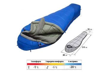 <h2>Спальник серии Mountain. </h2>Зачем нести лишние 10 см спальника, если ваш рост до 178 см. <h3>Особенности:</h3><ul> <li>Отделение под подушку с двумя входами</li> <li>Мягкий валик вдоль окна капюшона</li> <li>Лента от закусывания молнии</li> <li>Удобные затяжки разного цвета и форм</li> <li>Сетчатый внутренний карман</li> <li>Внутренняя ткань капюшона Soft MicroPolyester</li> <li>Анатомический капюшон</li> <li>Тепловой воротник с обхватом 360°</li> <li>Люминесцентный брелок</li> <li>Возможность состёгивать спальники, имеющие молнии с правой и левой стороны</li> <li>Температурный диапазон: -1/-6/-20 С</li> <li>Внешний материал: Polyester 190Т</li> <li>Внутренний материал: Polyester 190Т</li> <li>Наполнитель: APF-Isoterm 3D, плотность 2х175 г/м</li> <li>Размер: 210х80х55 см</li> <li>Размер в свернутом виде: 45х35х24 см</li></ul><br> <p>Вес: 1.7 кг</p> None Можно купить без предварительного заказа. Возможен самовывоз. Есть доставка.