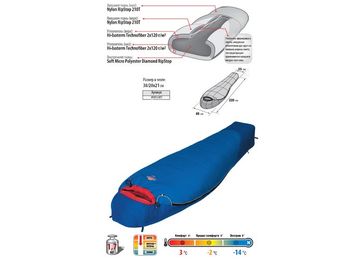 <h2>Наиболее популярный среди экстремальных туристов компактный и лёгкий трёх сезонный спальник.</h2> <ul><li> температурный режим:3/-2/-14</li><li> вес:1,7</li><li> ткань внешняя: Nylon ripstop 210T</li><li> ткань внутренняя: Soft Micro Poliester Diamond Ripstop</li><li> утеплитель: HI-Isoterm technofiber 2/120 г/м2</li></ul>
