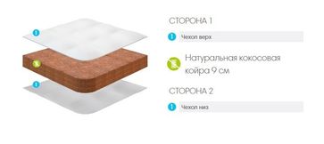 Беспружинный матрас Baby Cocos-9 – аналог модели Cocos-6 с конкурентным преимуществом большей высоты. 9-сантиметровый слой пролатексированной кокосовой койры устойчив к нагрузкам, отличается высокой жесткостью и рекомендован медиками для и профилактики болезней опорно двигательного аппарата. Педиатры, в свою очередь, «прописывают» кокосовую койру новорожденным, называя ее лучшим наполнителем. Натуральная, гипоаллергенная, хорошо вентилируемая, упругая и эластичная кокосовая койра имеет один недостаток – цену, но долговечность изделия компенсирует расходы.Качественный матрас для малыша до трех лет должен быть жестким. Нежности здесь неуместны! Идеально для новорожденных.Кол-во пружин на м2: БеспружинныйДлина (см): 160/190/195/200Ширина (см): 80Высота (см): 9Жесткость (сторона 1): ВысокаяЖесткость (сторона 2): ВысокаяМаксимальная нагрузка на одно спальное место (кг): 60Ткань чехла (по умолчанию): Детский поликоттон (100 г/м2)Основа: Натуральная кокосовая койра 9 см Минимальная сумма заказа 1000 рублей. Страна производства: Россия Возможен самовывоз.