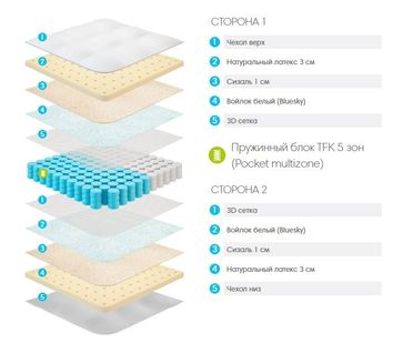 Высокий ортопедический матрас Exellent на основе независимого мультизонального пружинного блока "Pocket Multizone", натурального латекса и сизаля обеспечит Вам непревзойдённый комфорт и удобство во время сна. Помимо уникальных ортопедических качеств данный матрас обладает ярким дизайнерским чехлом, выполненным на основе мягкой трикотажной ткани "Манчестер". 5 типов пружин для 5-ти зон тела. Уникальный по своей комфортности 5-ти зонный пружинный блок "Pocket Multizone", входящий в конструкцию матраса, обеспечивает разную степень упругости пружин в соответствие с зонами тела, для которых они предназначаются. Жёсткость пружин, входящих в каждую из 5-ти зон пружинного блока, оптимально подобрана для того, чтобы Ваше тело находилось в естественном положении и не испытывало дискомфорта. Таким образом, матрас обеспечивает максимальный комфорт для людей с массой тела 60-90 кг. Терморегуляция и воздухообмен. Проблема поддержание оптимального микроклимата внутри спального места решана применением в конструкции данного матраса перфорации по всей высоте латексного слоя. Дополнительно к этому, применена технология "AeroBord", в соответствии с которой в коробе, усиливающем прочность матраса, по всему периметру проделаны вентилляционные отверстия. Кол-во пружин на м2: 256 Длина (см): 190/195/200 Ширина (см): 80 Высота (см): 25-26 Жесткость (сторона 1): Средняя Жесткость (сторона 2): Средняя Максимальная нагрузка на одно спальное место (кг): 120 Ткань чехла (по умолчанию): Трикотаж МАНЧЕСТЕР ( 0,8 мм ППУ + 300 г/м2 hollcon ) Основа: Пружинный блок TFK 5 зон (Pocket multizone) Минимальная сумма заказа 1000 рублей. Страна производства: Россия Возможен самовывоз.