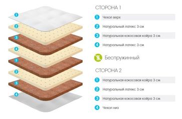 Превосходная модель "Lonax Fusion" обладает отличным ортопедическим эффектом, а использование в ней натуральных материалов делает ее еще более привлекательной. В этой модели чередуются такие материалы как: Латекс-100% натуральный мягкий материал, изготавливаемый из млечного сока каучуконосных растений и латексированная кокосовая койра - 100% натуральный жесткий материал, изготавливаемый из пролатексированных кокосовых волокон. Кол-во пружин на м2: Беспружинный Длина (см): 190/195/200 Ширина (см): 180 Высота (см): 19 Жесткость (сторона 1): Высокая Жесткость (сторона 2): Средняя Максимальная нагрузка на одно спальное место (кг): 130 Ткань чехла (по умолчанию): Двойной хлопко-вискозный жаккард (300 г/м2) ЛЮКС Основа: Беспружинный Минимальная сумма заказа 1000 рублей. Страна производства: Россия Возможен самовывоз.