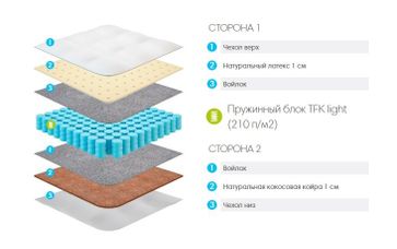 Матрас «Jazz» из новой серии «Light» – это недорогой вариант матраса, в базе которого используется пружинный блок – TFK Light. Кол-во пружин на 1 м2 составляет 210 штук. В наполнении одной стороны изделия применяется качественный натуральный латекс, дающий мягкость стороне. Жесткость другой стороны определяет кокосовая плита (койра). Матрас имеет стильный, очень современный вид. Чехол выполнен из качественного трикотажного полотна с эффектным кантом по контуру. Главное достоинство Матраса «Jazz»- уникальное сочетание стиля, качества и недорогой цены. Кол-во пружин на м2: 210 Длина (см): 190/195/200 Ширина (см): 80 Высота (см): 17 Жесткость (сторона 1): Низкая Жесткость (сторона 2): Средняя Максимальная нагрузка на одно спальное место (кг): 90 Ткань чехла (по умолчанию): Трикотаж (100 г/м2) Основа: Пружинный блок TFK light (210 п/м2) Минимальная сумма заказа 1000 рублей. Страна производства: Россия Возможен самовывоз.