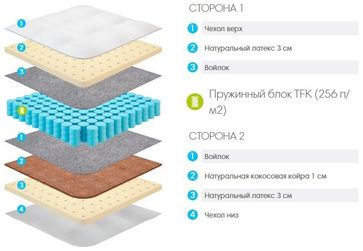 В модели "Lonax Latex-Medium" с двух сторон используется Латекс - 100% натуральный мягкий материал, изготавливаемый из млечного сока каучуконосных растений. C одной стороны для увеличения жесткости используется латексированная кокосовая койра - 100% натуральный жесткий материал, изготавливаемый из пролатексированных кокосовых волокон. Кол-во пружин на м2: 256 Длина (см): 190/195/200 Ширина (см): 80 Высота (см): 21 Жесткость (сторона 1): Ниже средней Жесткость (сторона 2): Средняя Максимальная нагрузка на одно спальное место (кг): 100 Ткань чехла (по умолчанию): Хлопковый жаккард (200 г/м2) СТАНДАРТ Основа: Пружинный блок TFK (256 п/м2) Минимальная сумма заказа 1000 рублей. Страна производства: Россия Возможен самовывоз.