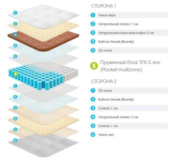 Высокий ортопедический матрас Lorentto на основе независимого мультизонального пружинного блока "Pocket Multizone", натурального латекса и сизаля обеспечит Вам непревзойдённый комфорт и удобство во время сна. Помимо уникальных ортопедических качеств данный матрас обладает ярким дизайнерским чехлом, выполненным на основе мягкой трикотажной ткани "Джаст".5 типов пружин для 5-ти зон тела. Уникальный по своей комфортности 5-ти зонный пружинный блок "Pocket Multizone", входящий в конструкцию матраса, обеспечивает разную степень упругости пружин в соответствие с зонами тела, для которых они предназначаются. Жёсткость пружин, входящих в каждую из 5-ти зон пружинного блока, оптимально подобрана для того, чтобы Ваше тело находилось в естественном положении и не испытывало дискомфорта. Таким образом, матрас обеспечивает максимальный комфорт для людей с массой тела 60-90 кг.Терморегуляция и воздухообмен. Проблема поддержание оптимального микроклимата внутри спального места решана применением в конструкции данного матраса перфорации по всей высоте латексного слоя. Дополнительно к этому, применена технология "AeroBord", в соответствии с которой в коробе, усиливающем прочность матраса, по всему периметру проделаны вентилляционные отверстия.Кол-во пружин на м2: 256Длина (см): 190/195/200Ширина (см): 180Высота (см): 25-26Жесткость (сторона 1): Выше среднейЖесткость (сторона 2): Выше среднейМаксимальная нагрузка на одно спальное место (кг): 130Ткань чехла (по умолчанию): Трикотаж ЖАСТ ( 0,8 мм ППУ + 300 г/м2 hollcon )Основа: Пружинный блок TFK 5 зон (Pocket multizone) Минимальная сумма заказа 1000 рублей. Страна производства: Россия Возможен самовывоз.