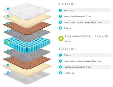 Модель "Lonax Medium"- это сочетание натуральных материалов - Латекса и латексированной кокосовой койры, что придает матрасу среднюю жесткость и отличный ортопедический эффект. Латекс- 100% натуральный мягкий материал, изготавливаемый из млечного сока каучуконосных растений. Латексированная кокосовая койра - 100% натуральный жесткий материал, изготавливаемый из пролатексированных кокосовых волокон. Подойдет большинству людей, которые любят комфорт, качество и удобство. Кол-во пружин на м2: 256 Длина (см): 190/195/200 Ширина (см): 120 Высота (см): 22 Жесткость (сторона 1): Средняя Жесткость (сторона 2): Средняя Максимальная нагрузка на одно спальное место (кг): 110 Ткань чехла (по умолчанию): Хлопковый жаккард (200 г/м2) СТАНДАРТ Гарантия: 24 месяца Основа: Пружинный блок TFK (256 п/м2) Минимальная сумма заказа 1000 рублей. Страна производства: Россия Возможен самовывоз.