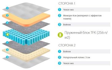 В модели "Lonax Memory-Latex" с одной стороны используется искусственный экологически чистый материал Memory Foam - материал специальной структуры, подстраивающийся под форму тела, изобретение космической программы NASA для снижения нагрузки космонавтов. С другой стороны используется Латекс - 100% натуральный мягкий материал, изготавливаемый из млечного сока каучуконосных растений. Кол-во пружин на м2: 256 Длина (см): 190/195/200 Ширина (см): 80 Высота (см): 21 Жесткость (сторона 1): Ниже средней Жесткость (сторона 2): Низкая Максимальная нагрузка на одно спальное место (кг): 90 Ткань чехла (по умолчанию): Хлопковый жаккард (200 г/м2) СТАНДАРТ Основа: Пружинный блок TFK (256 п/м2) Минимальная сумма заказа 1000 рублей. Страна производства: Россия Возможен самовывоз.
