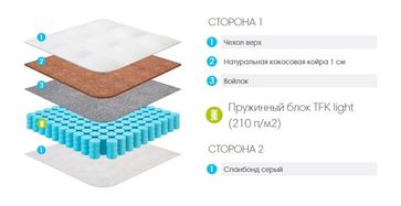 Матрас «Polo» имеет среднюю жесткость, предназначен для пользователей, предпочитающих жесткое спальное ложе. В основе изделия - пружинный блок независимого размещения пружин TFK Light (210 пр/м2.). Наполнитель из натурального кокоса дополняет архитектуру матраса с одной стороны. Кокос (кокосовая койра) – экологически чистый материал с хорошей воздухопроницаемостью и высокой жесткостью. В тандеме с пружинным блоком сформировался матрас высотой 15 см. Кол-во пружин на м2: 210 Длина (см): 190/195/200 Ширина (см): 160 Высота (см): 15 Жесткость (сторона 1): Средняя Жесткость (сторона 2): Односторонняя модель Максимальная нагрузка на одно спальное место (кг): 90 Ткань чехла (по умолчанию): Трикотаж (100 г/м2) Основа: Пружинный блок TFK light (210 п/м2) Минимальная сумма заказа 1000 рублей. Страна производства: Россия Возможен самовывоз.
