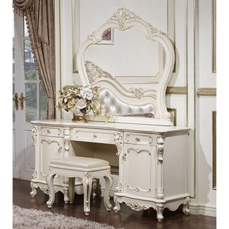 Столик туалетный с зеркалом и банкеткой "Глория" FF6093 MK-2708Размер столика: 1570х510х1930 ммРазмер банкетки: 350х460х460 мм Материал: Массив гевеиЦвет: Слоновая кость с золотом Минимальная сумма заказа 1000 рублей. Возможен самовывоз.