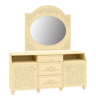 Шикарный туалетный стол, состоящий из двух модулей: СО-3 зеркало и СО-21 тумба. Зеркало подвесное, может устанавливаться на любую комфортную для вас высоту. Конструктивно тумба имеет три выдвижных ящика и две секции с распашными дверцами.
