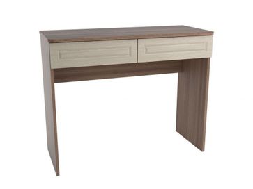 Туалетный стол ТС-22 в цвете дуб шамони/стоун тк станет незаменимым предметом интерьера Вашей спальной комнаты. Ширина стола 950 мм, что позволит комфортно разместить на нем все необходимое. Под столешницей два выдвижных ящика для мелких предметов. Модель изготовлена из качественной ламинированной ДСП 16 мм. В оформлении фасадов МДФ применяется уникальная технология нанесения объемного узора (3-D). Ящики крепятся телескопическими направляющими полного выдвижения.