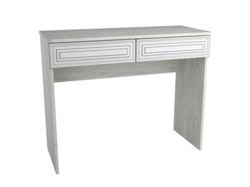Туалетный стол ТС-23 в цвете сосна винтер станет незаменимым предметом интерьера Вашей спальной комнаты. Ширина стола 950 мм, что позволит комфортно разместить на нем все необходимое. Под столешницей два выдвижных ящика для мелких предметов. Модель изготовлена из качественной ламинированной ДСП 16 мм. В оформлении фасадов МДФ применяется уникальная технология нанесения объемного узора (3-D). Ящики крепятся телескопическими направляющими полного выдвижения.