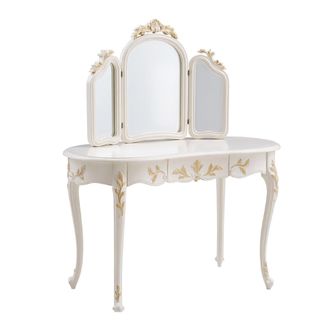 Туалетный столик с зеркалом "Shantal" MK-5013-WG Размер: 1200х600х1410 ммМатериал: Массив гевеи Цвет: Белый с золотом Минимальная сумма заказа 1000 рублей. Возможен самовывоз.