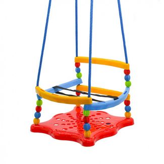 Очень легкие пластиковые качели на прочных кронштейнах. Барьеры безопасности сделаны из прочного пластика и ограничивают качели со всех 4 сторон. С каждой стороны ограничитель поднимается и опускается независимо от остальных ограничителей. Таким образом, Вы можете посадить ребенка на качели с любой стороны. Это очень удобно. Сиденье продумано для детей. Оно из усиленного прочного пластика с углублением посредине. Эти качели с прочными веревками-тросами. Качели украшают яркие разноцветные пластиковые шарики, которые насажены на прочную веревку. Качели от RT- это прекрасная возможность провести время на природе, научиться играть и общаться. Качели относятся к категории развивающих игрушек. Ребенок учится управлять своим телом, тренирует вестибулярный аппарат, старается управлять качелями, раскачивая их. Это очень развивает малышей физически и доставляет им удовольствие от игры. Когда малыш качается, развивается общая моторика, укрепляются одновременно несколько групп мышц спины, рук, ног, живота. Польза качелей неоспорима. Любовь к раскачиванию живет в детях буквально на клеточном уровне. Ведь сначала младенец покачивался у мамы в животике, затем на родительских руках и коленях, затем- в колыбельке и в коляске. Качалками и качающимися механизмами оборудуют кроватки, стульчики, детские креслица-шезлонги, игрушечные лошадки, машинки. На детских площадках во дворе качели никогда не пустуют. Раскачивание, взлеты и свободное падение способствуют развитию вестибулярного аппарата ребенка, улучшению координации движений, да и просто заряжает хорошим настроением. Стимулирует малыша к активным действиям и движению, развивает воображение. Качели украсят любую дачу и станут любимым местом для игр Вашего ребенка. Подвесные качели можно установить в помещении или на улице. Также эти качели будут хорошим дополнением к "шведской стенке". В комплекте- пластиковые карабины для регулировки веревок качелей. Рекомендуется для детей от 1- 2 лет. RT рекомендует. None Есть достав