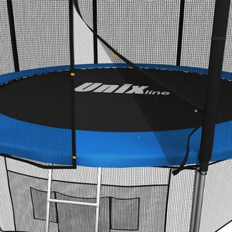 Батуты UNIX line разработаны для ежедневного использования детьми и взрослыми, устойчивы к неблагоприятным погодным условиям и соответствуют международным стандартам качества ISO 9001. Металлический каркас батутов выполнен из особо прочной гальванизированной стали с использованием новейшей системы креплений деталей рамы батута «T-Conneсtor» (толщина стали 2.2 мм), что обеспечивает высокую надежность рамы и уровень безопасности пользователя, максимально допустимый вес которого, в зависимости от модели (размера), может достигать 160 кг. Гарантия на раму 2 года!!! Прыжковое полотно батутов UNIX line обладает повышенной износостойкостью благодаря высокой плотности волокон полипропилена (перматрон), из которых состоит само полотно. Защитный мат для пружин, расположенный по периметру батута, состоит из четырех слоев, обшитых ПВХ материалом, плотностью 130 г/см3 и надежно закрывает пружины. Помимо верхней защитной сетки, все батуты модельного ряда UNIX line оборудованы нижней защитной сеткой, которая препятствует проникновению под прыжковое полотно батута детей, животных, а так же попаданию посторонних предметов, и лестницей для удобства пользования. А в моделях диаметром от 10FT (305см.), в комплект входят специальные крепления батута к земле (колышки). Крыша для батута UNIX line прекрасно защитит Вас и Ваших детей как от солнца, так и от дождя. Прочная металлическая конструкция каркаса крыши надежно закрепляется на стойках защитной сети, а плотный ПВХ материал крыши препятствует проникновению осадков и ультрафиолетовых лучей. Чехол и сборка в подарок Есть доставка.