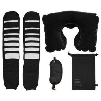 <div>Состав набора:&nbsp;<br /> <ul class="list"> <li>надувная подушка под шею</li> <li>носки (размер 42)</li> <li>маска для сна</li> <li>беруши</li> </ul> </div> <div>Набор упакован в дорожный чехол.</div> <div> <ul class="itm-opts"> <li> <div class="itm-opts-label">Размеры: чехол: 11х19 см</div> </li> <li> <div class="itm-opts-label">Материал: подушка - ПВХ, флокированный; чехол, маска - полиэстер; носки - хлопок; беруши - вспененный полиуретан</div> </li> <li> <div class="itm-opts-label">Вес (1 шт.): 105 г</div> </li> </ul> </div> Наличные, безнал., карты, эл. деньги, юр. лица Возможен самовывоз. Есть доставка.