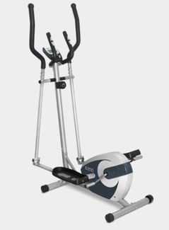 Эллиптический тренажер с маховиком весом 11 кг., 8-ми ступенчатой системой магнитного нагружения и датчиками пульса на поручнях. Максимальный вес пользователя 110 кг. None Есть доставка.