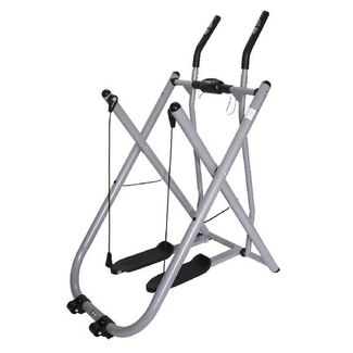 Эллиптический тренажер Air Walker, "бегущий по воздуху". Легкий в использовании тренажер для домашних силовых и аэробных тренировок, для растяжки. Отлично подходит для поддержания в тонусе мышц бедер и ягодиц, помогая сжигать жир, тренирует сердечно-сосудистую систему организма.Дисплей с ЖК-экраном позволяет отслеживать необходимые параметры тренировки: время, расстояние, калории, пульс, шаги.Руль с мягкими накладками для комфорта, и нескользящие педали для дополнительной стабильности.На руле расположены 2 датчика пульса с отображением показаний на дисплее консоли. Как правило, встроенные на тренажерах датчики имеют погрешность измерения. Поэтому для более точного определения частоты сердечных сокращений (ЧСС) рекомендуем использовать нагрудный кардиопояс с часами - монитором, модель DFC W117 (опция, приобретается отдельно).Прочный стальной каркас. Складная конструкция и встроенные колеса позволяют хранить тренажер в любом удобном месте, и экономить жизненное пространство.Модель не требует специальных знаний для самостоятельной сборки. Тип домашний Система нагружения собственный вес Максимальный вес пользователя 120 кг Педали с рифленым покрытием Расстояние между педалями 12 см (внутреннее, Q-фактор), 37,5 см (внешнее) Размер педали 37 х 12,5 см Измерение пульса сенсорные датчики на поручнях Нагрудный кардиопояс пояс с часами - монитором DFC W117 (опция, приобретается отдельно) Дисплей монохромный LCD Показания консоли время, расстояние, калории, шаги Язык интерфейса английский Транспортирово