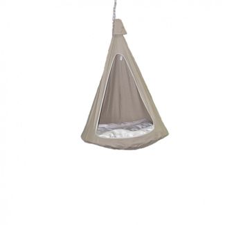 Необыкновенный гамак- качели для детей и взрослых. Высотой 160 см, просторный и вместительный гамак- это идеальное место для отдыха и игр. У Ваших детей будет свой просторный домик, а у взрослых - уютное тихое местечко. В гамаке может разместиться вся семья. Гамак как сейчас принято выражаться - в тренде. Это действительно, очень модная вещь, которая станет стильным элементом мебели как дома, так и на улице. Незаменимой вещью для отдыха и уединения. А выглядит гамак нас футуристично, что невозможно оторвать взгляд от его обтекаемых форм. Комфорт- 10 баллов Дизайн-10 баллов Надежность- 10 баллов Качество- 10 баллов Оцените эргономичность и стиль, прочность и качество в гамаках Гамак выполнен из высокопрочной дышащей ткани Каnvas, которая изготавливается по принципам натуральности материала и выглядит по-природному естественно. Визуально ткань напоминает хлопковый джинс, но обладает повышенной прочностью и имеет грязеотталкивающую пропитку. Эргономичный гамак усилен прочными хлопковыми стропами, которые берут на себя всю нагрузку и стальным разъемным кольцом- обручем в основании гамака. Кольцо создает не стильную дизайнерскую форму гамаку, но и делает это изделие полностью безопасным, четко фиксирует гамак в горизонтальном положении, и обеспечивает дополнительное пространство отдыхающему внутри. Диаметр кольца- 110 см будет комфортен любому взрослому и ребенку. Кольцо- обруч очень легко собирается и разбирается. Вы быстро и непринужденно будете собирать и разбирать гамак. Высота гамака- 160 см. Для крепления гамака создана усиленная система из 4 строп, которая выдержит любую нагрузку, любой вес. Внутри имеется дополнительная ручка, с помощью которой легко залезать в гамак и вылазить из него. По противоположным сторонам есть дополнительные петли, в которые возможно продеть веревку и закрепить гамак между деревьями, чтобы он не качался. В комплекте- большая вместит