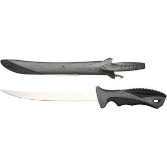 Практичный в применении и удобный в переноске рыболовный нож. Клинок надежно фиксируется в пластиковых ножнах. Удобно извлекается одной рукой. Эргономичная рукоятка имеет накладки из резины, делающие работу безопасной. Клипса позволяет крепить ножны на ремне, не снимая его. Вставка из мягкой резины не позволяет ножу раскачиваться при ходьбе. Имеется алмазная точилка для быстрого восстановления остроты лезвия. None