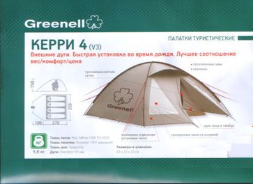 - Палатка Greenell Керри 4 V3 (коричневый) по выгодной цене 8 990 р. руб.;