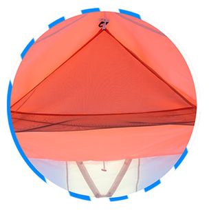 - Оригинальный дизайн наружного тента. Оранжевый верх купола палатки издалека виден днем и хорошо заметен ночью (при горящем фонаре,лампе,свече)