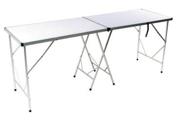 Универсальный стол для загородного отдыха повышенной устойчивости. Легко складывается, переносится и занимает мало места при хранении. Поверхность столешницы - белая. Тканевый чехол защищает от царапин при перевозке и хранении. Размер в сложенном виде: 99х60х6,6 см Вес: 7,1 кг Размер стола: 198х60х78 см Материал рамы: алюминий 22 мм Допустимая нагрузка: 40 кг Материал столешницы: МДФ 4,2 мм Основной цвет: белый None