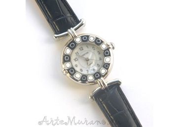 Циферблат из муранского стекла с мурринами в технике Миллефиори (Millefiori). Чёрные и белые муррины, ремешок чёрный None