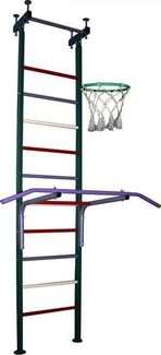 Характеристики Базовая комплектация: металлическая шведская стенка, переставляемые брусья, турник съёмный, баскетбольное кольцо. Ширина шведской стенки - 600 мм. Устанавливается в распор между полом и потолком (2.5 - 3.0 м). Площадь 540 х 740 мм. Турник 1170 мм. Нагрузка на турник до 70 кг. Вес комплекса не более 31 кг. Размер упаковки: 1,21х0,14х0,14 и 0,51х0,51х0,14 м. None