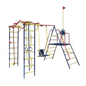 Способ установки: цементируются «стаканы» Материал: металл Высота: 2,20 м Занимаемая площадь: 3,20 х 2,30 м Диаметр трубы: 38 мм Толщина металла: 1,5 мм Диаметр ступени: 25 мм Ширина ступени: 0,49 м Шаг ступени: 0,26 м Тип ступени: металл Допустимая нагрузка на навесное оборудование: 50 кг Комплектация: канат, кольца, качели на подшипниках со спинкой Допустимая нагрузка: 100 кг Вес комплекса: 108 кг Упаковка: картонная коробка Допустимая нагрузка на турник: 100 кг Размеры упаковки (ДхШхВ): 1 место 2,41 х 0,22 х 0,08 м 2 место 2,08 х 0,33 х 0,11 м 3 место 1,06 х 0,88 х 0,11 м 4 место 1,60 х 0,41 х 0,05 м None Есть доставка.