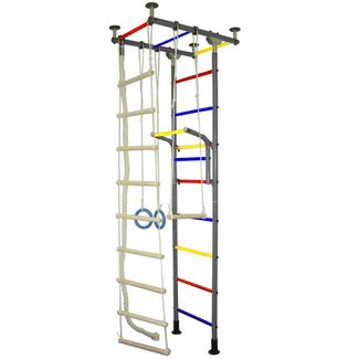 Спорткомплекс представляет собой сборно-разборную конструкцию из металлических труб, покрытых полимерной порошковой краской, установленную в распор между полом и потолком в кв None