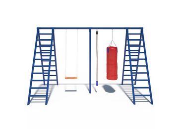 Характеристики Общая ширина: 4,20м Ширина качелей: 1,5м Ширина лестницы: 0,6м Ширина отсека под обвес: 1,4м Длина стоек: 2,80м Рабочая высота комплекса: 2,30м Диаметр трубы каркаса: 40мм (толщина стенки 1,5мм) Диаметр перекладин: 25мм (толщина стенки 1,5мм) Вес: не более 60кг. Нагрузка: 120кг Комплектация: Спортивный комлекс Качели на цепи Канат Мешок боксерский 7 кг. None