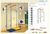 гимнастическая стенка с металлическими перекладинами, канат, кольца, трапеция, турник, стойка с канатной сеткой