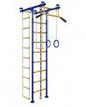 Вертикаль Юнга 2.1м Домашний детский спортивный комплекс с ПВХ-покрытием перекладин Технические характеристики: . Тип крепления: враспор . Материал: стойки - стальная круглая труба 40 х 1,5 мм, верхняя опора - 40 х 2 мм, перекладины - 27 х 1,5 мм . Плавная регулировка и распор осуществляется с помощью резьбовых шпилек . Шайбы-упоры со специальными прокладками для защиты пола и потолка от повреждений . Окрашен с применением современной порошковой технологии . Крепежные элементы закрыты защитными колпачками . Высота регулировки стоек: от 235 до 300 см . Ширина перекладины шведской стенки: 45 см . Шаг ступеней: 26 см . Длина верхней опоры рамы: 87 см . Цвет стоек: синий . Цвет перекладин: - Юнга 2.1м.с: цветные (красный желтый, зеленый) - Юнга 2.1м.у: желтый . Торговая марка: Россия . Страна изготовления: Россия . Нагрузка на один элемент конструкции: 90 кг . Нагрузка на шведскую стенку: 120 кг Комплектация: . Металлическая шведская стенка . Перекладины с ПВХ-покрытием . Турник с широким хватом, изопреновые ручки . Канат . Кольца гимнастические . Трапеция Размеры в упаковке: - 1 упаковка: 121 х 14 х 14 см - 1 упаковка: 57 х 20 х 29 см Фактически занимаемое пространство (Д.Ш.В.): 87 х 57 х (235 - 300) см Вес: 25 кг Внимание! В комплектацию не входит веревочная лестница (при необходимости покупается отдельно, стоимость 520 руб.). Цвет комплекса может отличаться от приведенного на фото. Описание: Домашний детский спортивный комплекс Вертикаль Юнга 2.1м с ПВХ-покрытием перекладин предназначен для физического развития, увеличения силы и ловкости у детей и взрослых в домашних условиях. Комплекс легко собирается и устанавливается в распор между полом и потолком в диапазоне от 2,35 до 3,0 метров. Модель Юнга 2.1м выпускается в 2-х видах: с разноцветными перекладинами (Юнга 2.1м.с) и желтыми перекладинами (Юнга 2.1м.у). В базовую комплектацию комплекса входят: металлическая шведская стенка, турник с широким хватом и изопреновыми ручками, канат, кольца гимнастиче