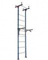 Вертикаль Юнга 5+ТБ Домашний детский спортивный комплекс Технические характеристики: . Материал: стойки - стальная круглая труба 40 х 1,5 мм, верхняя опора - 40 х 2 мм, перекладины и турник - 25 х 1,5 мм . Легко собирается и устанавливается в распор между полом и потолком . Плавная регулировка и распор осуществляется с помощью резьбовых шпилек . Резиновые амортизаторы-прокладки для защиты пола . Окрашен с применением современной порошковой технологии . Крепежные элементы закрыты защитными колпачками . Высота регулировки стоек: от 235 до 300 см . Ширина перекладины шведской стенки: 60 см . Ширина турника: 110 см . Регулировка ширины брусьев . Шаг ступеней: 26 см . Цвет - стоек: синий - перекладин: белый . Торговая марка: Россия . Страна изготовления: Россия . Нагрузка на один элемент конструкции: 90 кг . Нагрузка на шведскую стенку: 120 кг Комплектация: . Металлическая шведская стенка . Турник с брусьями навесной, переставляемый по высоте Размеры в упаковке: - 1 упаковка: 121 х 14 х 14 см - 1 упаковка: 70 х 40 х 40 см Фактически занимаемое пространство (Д.Ш.В.): 70 х 33 х (235 - 300) см (без учета турника) Вес: 30 кг Описание: Домашний детский спортивный комплекс Вертикаль Юнга 5+ТБ предназначен для физического развития, увеличения силы и ловкости у детей и взрослых в домашних условиях. Комплекс легко собирается и устанавливается в распор между полом и потолком в диапазоне от 2,35 до 3,0 метров. В базовую комплектацию комплекса входят: металлическая шведская стенка, турник с брусьями навесной, переставляемый по высоте. Данный набор спортивных снарядов позволяет эффективно тренировать практически все мышцы верхней части туловища и брюшного пресса. Удобные ручки обеспечивают комфорт при выполнении упражнений. Возможность перестановки турника с брусьями по высоте и регулировка ширины брусьев позволяет подстраивать снаряд под пользователя и изменять нагрузку на мышцы. Упражнения способствуют отличной растяжке, хорошему самочувствию и поддержке тонуса орга