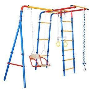 Страна происхождения: Россия Способ установки: цементируются «стаканы» Материал: металл Высота: 1,90 м Занимаемая площадь: 1,55 х 2,10 м Тип турника: нерегулируемый Диаметр трубы: 42 мм Толщина металла: 1,5 мм Диаметр ступени: 25 мм Ширина ступени: 0,45 м Шаг ступени: 0,25 м Тип ступени: металл Комплектация: качели, кольца с перекладиной, канат, турник Допустимая нагрузка: 100 кг Вес комплекса: 48 кг Упаковка: картонная коробка Размеры упаковки (ДхШхВ): 1 место 1,22 х 0,44 х 0,14 м 2 место 1,22 х 0,44 х 0,14 м None Есть доставка. Доставка: 300.0RUR