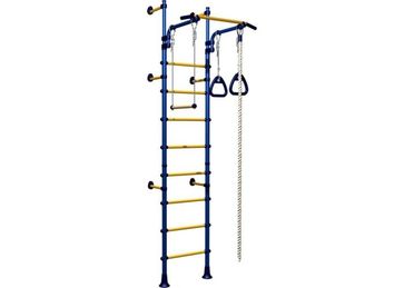 Комплекс представляет собой сборно-разборную металлическую конструкцию. Металлическая шведская стенка с мягкими обрезиненными перекладинми Детский спортивный комплекс ДСК Карусель — Возможные цвета: сине-желтый, зелено-желтый, красно-желтый — Крепление: к стене Комплектация: — турник — канат — трапеция — кольца гимнастические
